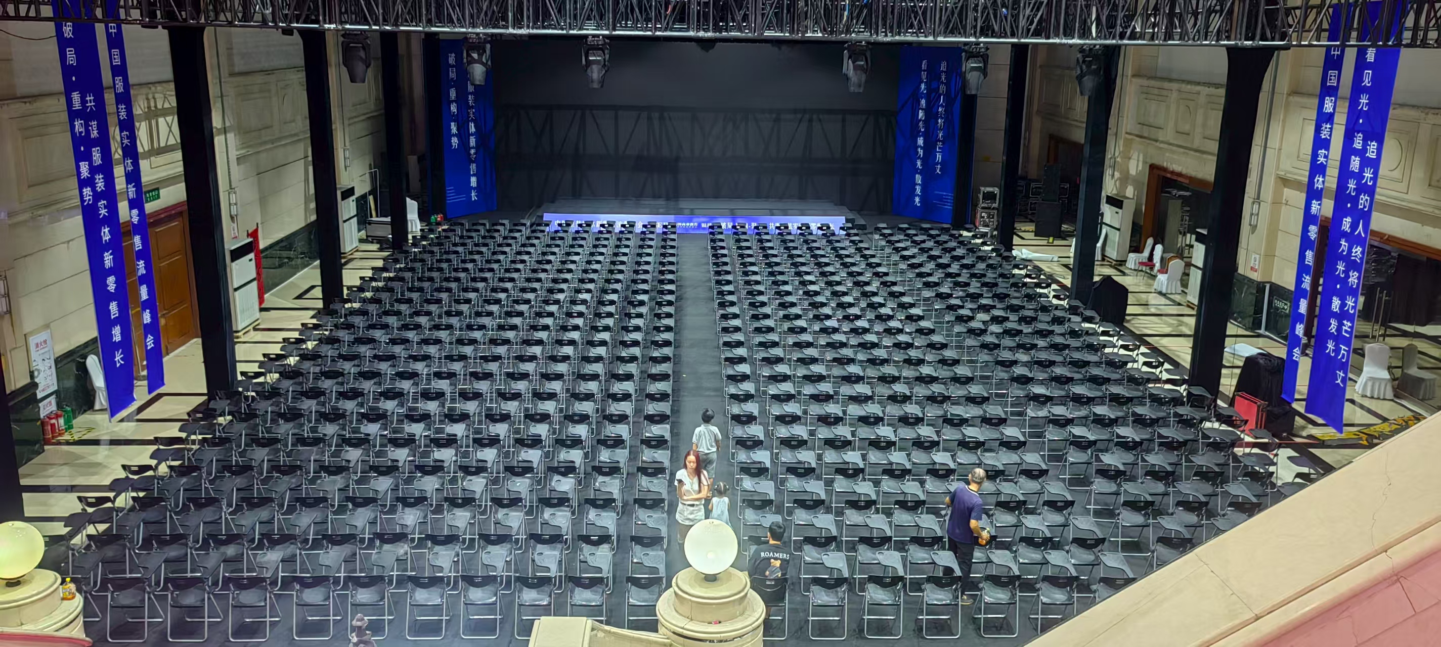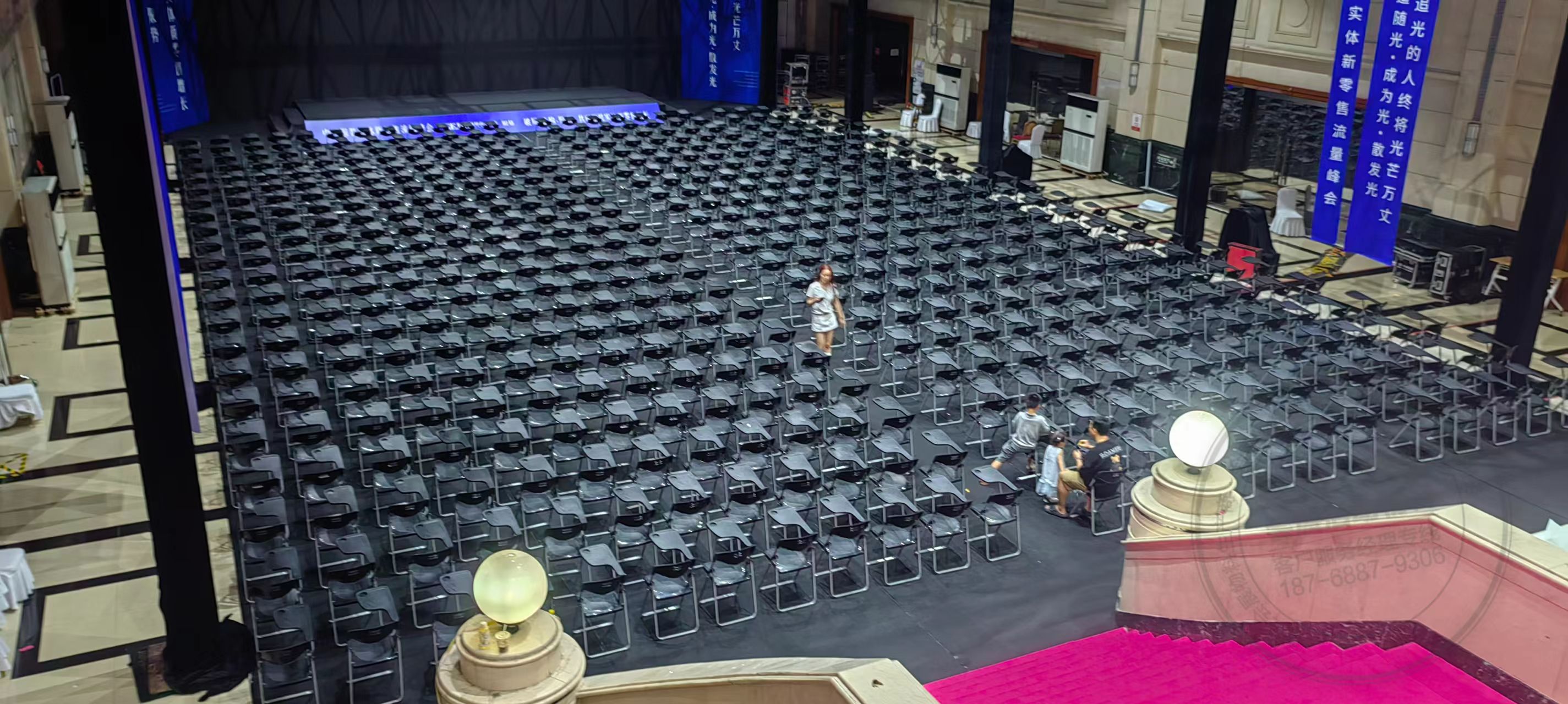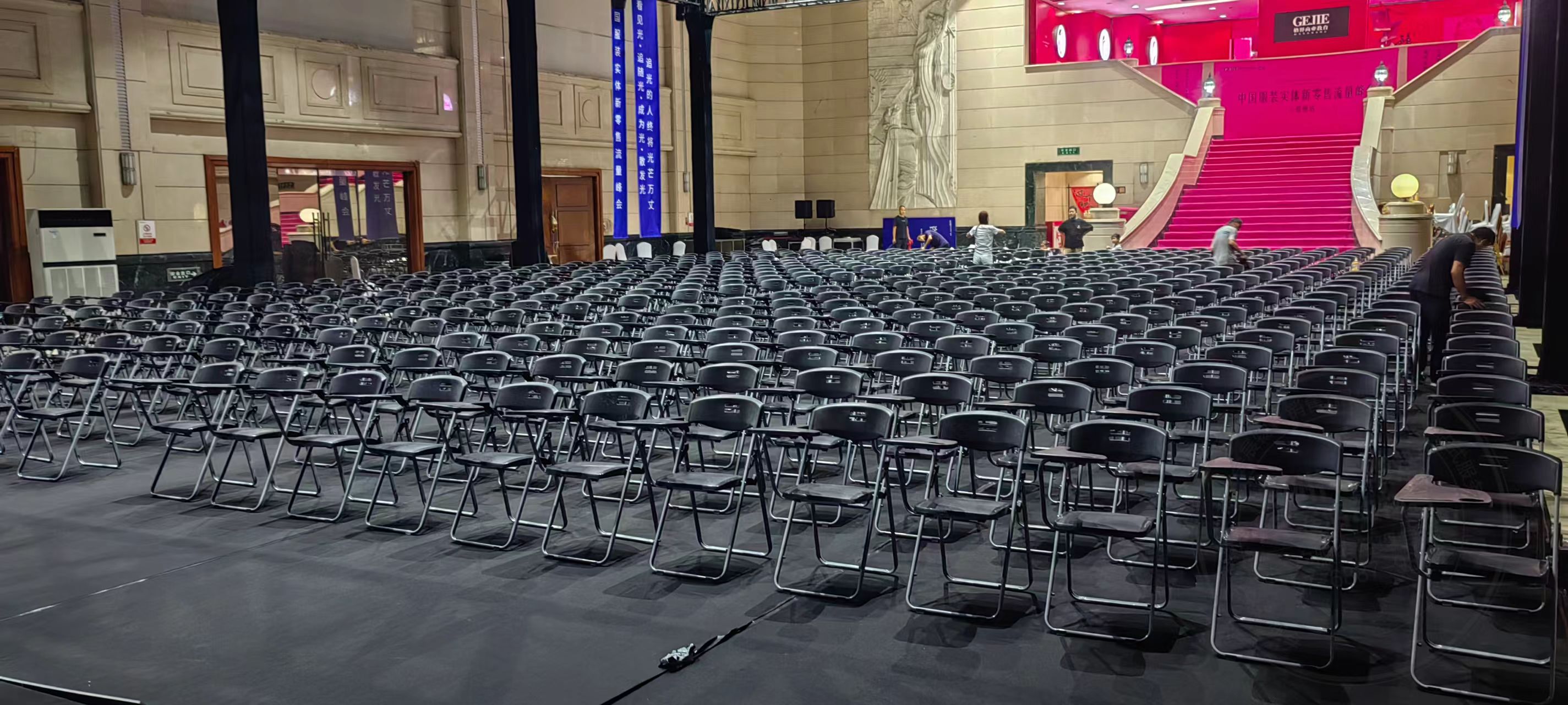 中国服装实体新零售流量峰会郑州站写字板折叠椅出租郑州记者椅租赁搭建